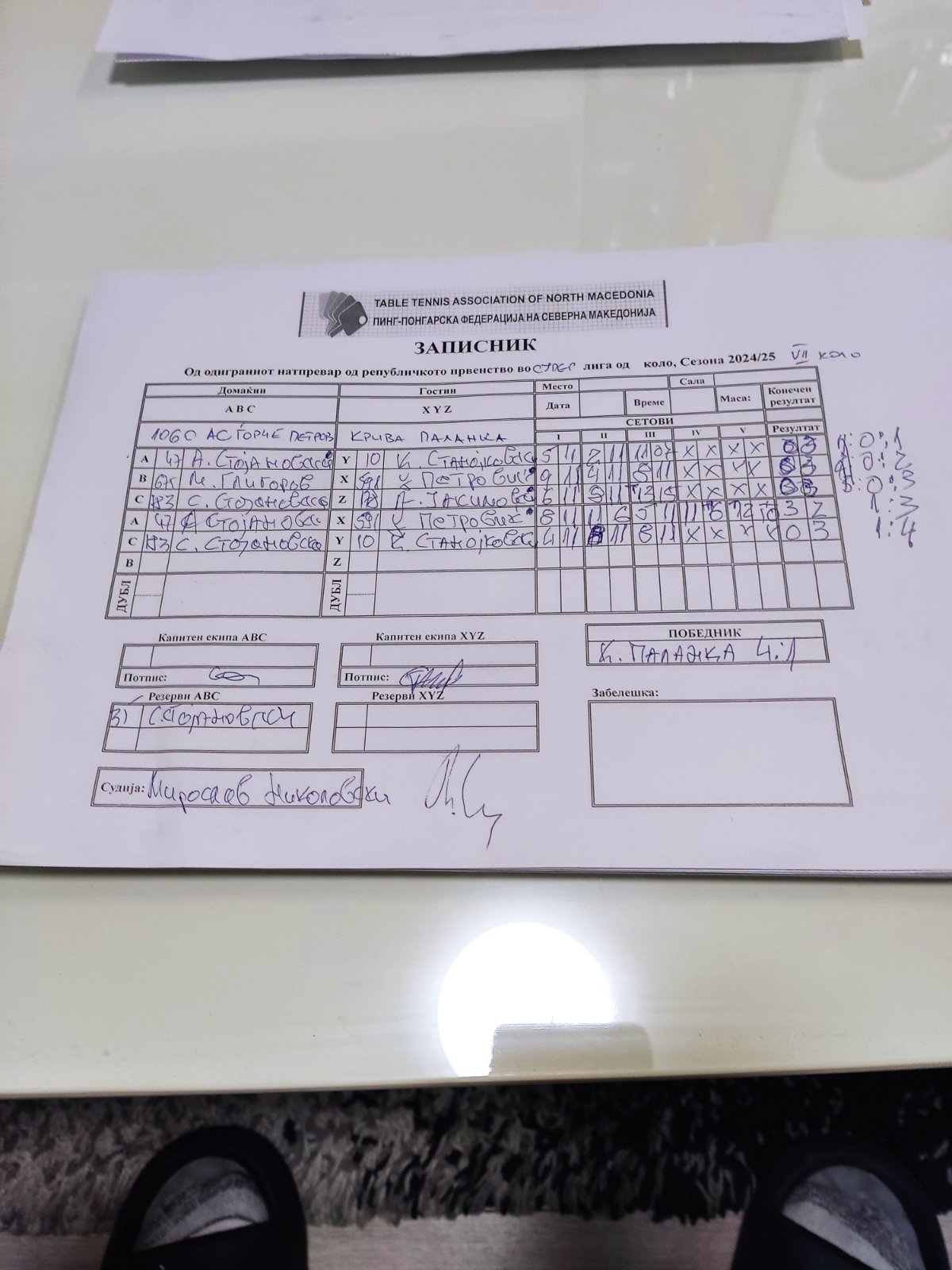 | 10 60 АС Ѓорче Петров | - | Крива Паланка | 1 | : | 4 | Крива Паланка | - | 10 60 АС Ѓорче Петров | : | ||||