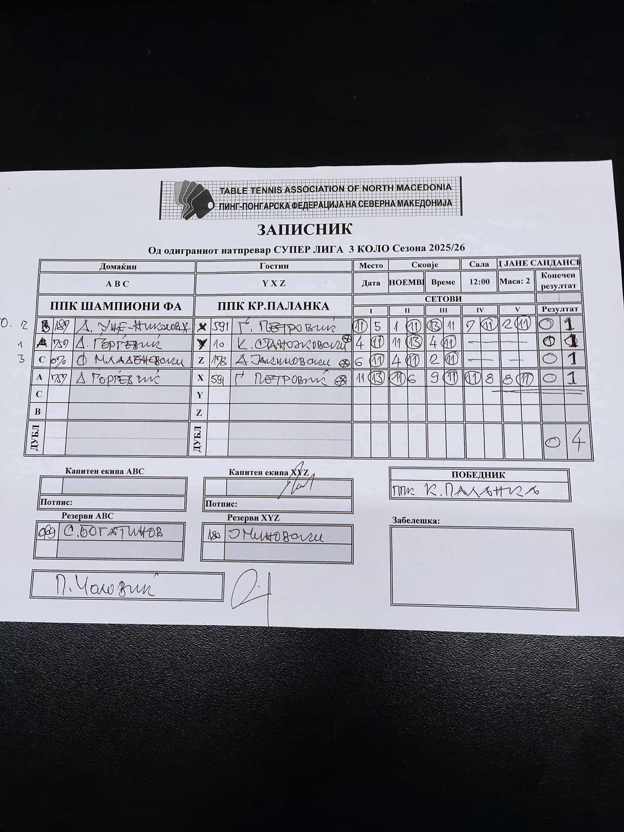 | Шампион Фа | - | Крива Паланка | 0 | : | 4 | Крива Паланка | - | Шампион Фа | : | ||||