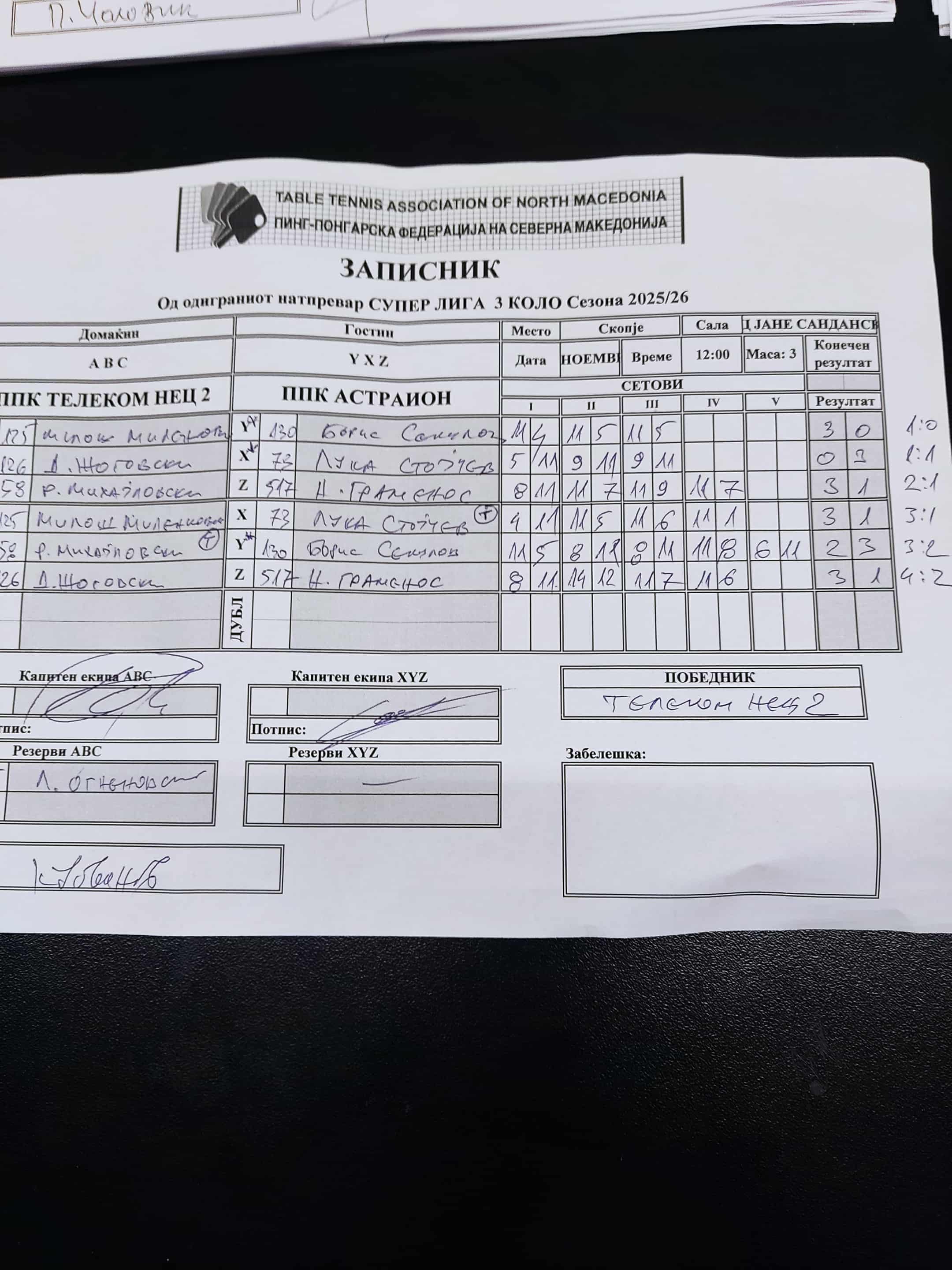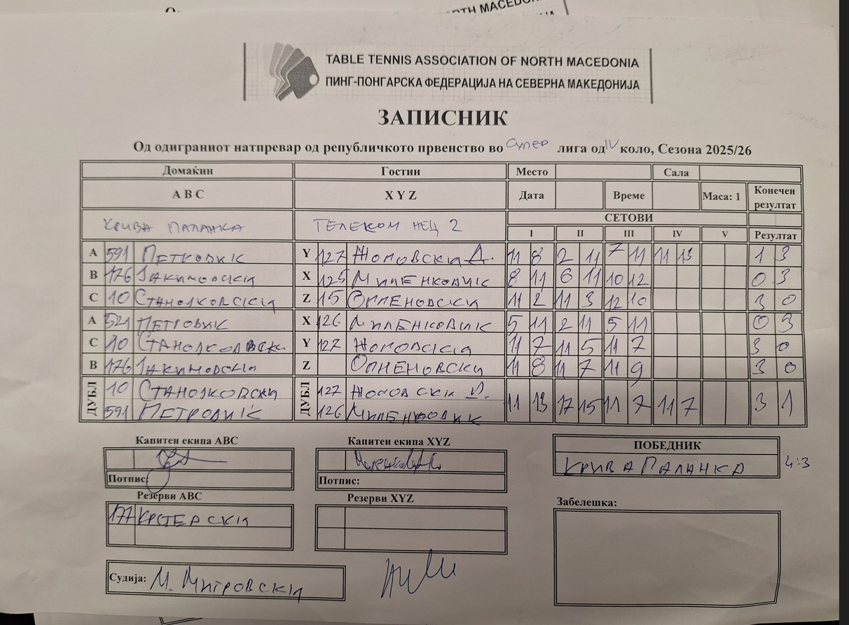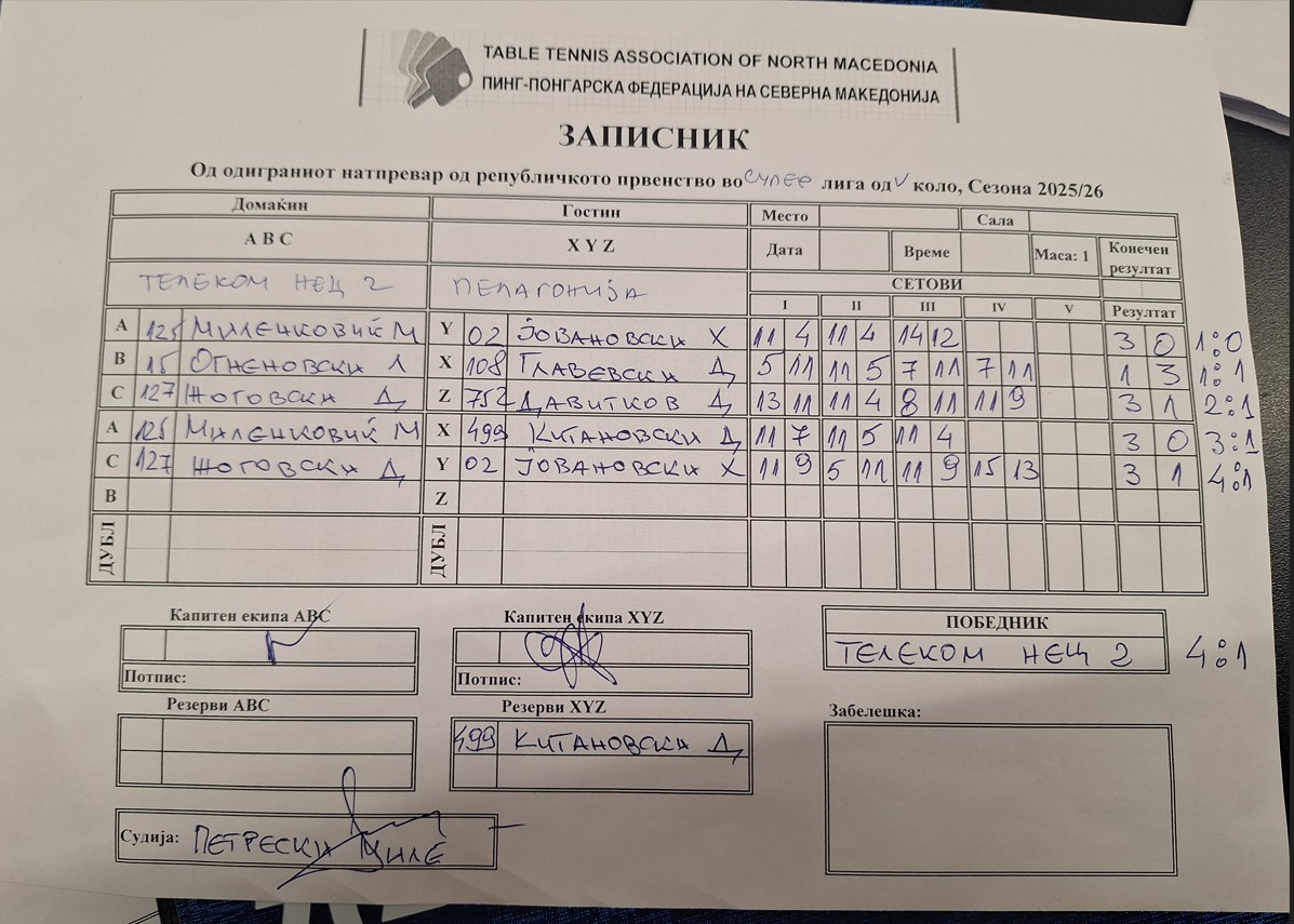 | Телеком Нец 2 | - | 10 60 АС Ѓорче Петров | 4 | : | 3 | 10 60 АС Ѓорче Петров | - | Телеком Нец 2 | : | ||||