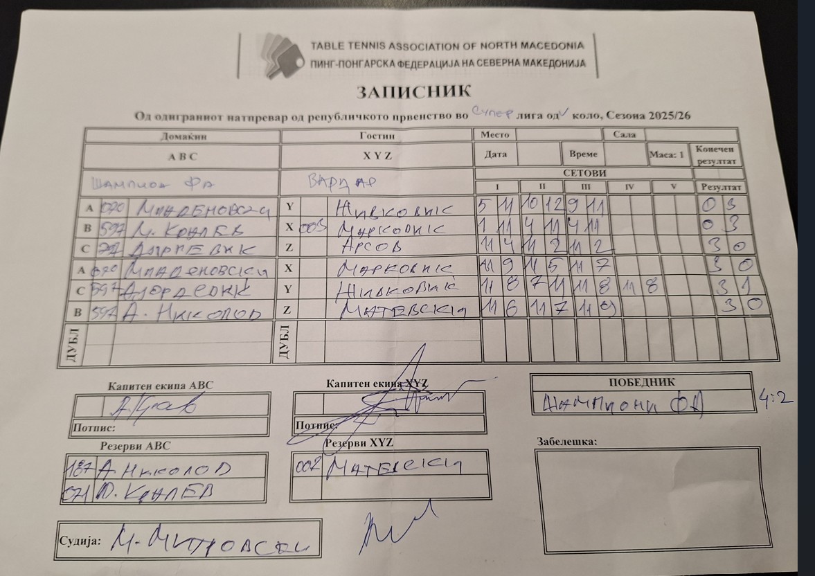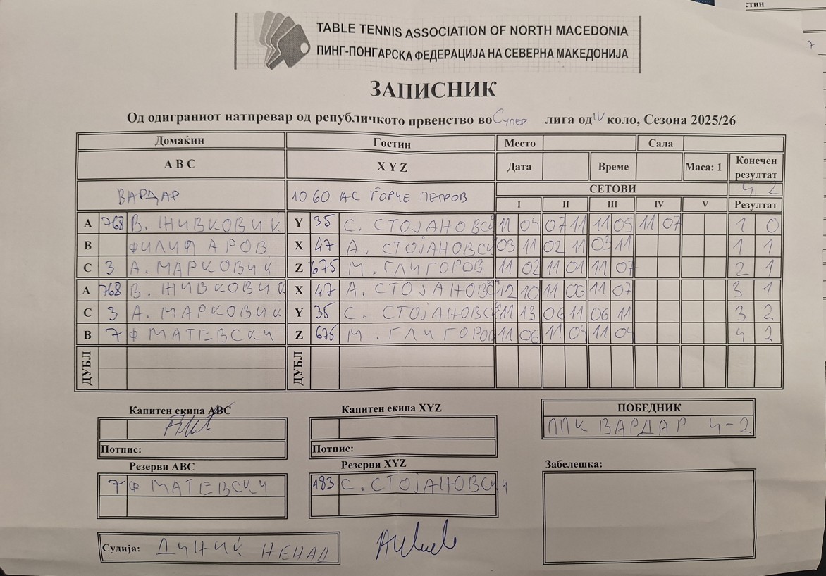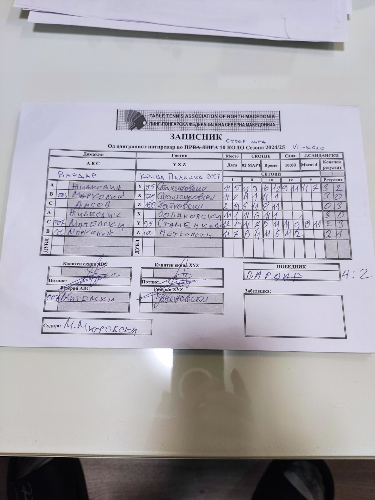 Телеком Нец 2 | - | Вардар | 2 | : | 4 | XVI КОЛО | Вардар | - | Телеком Нец 2 | : | ||