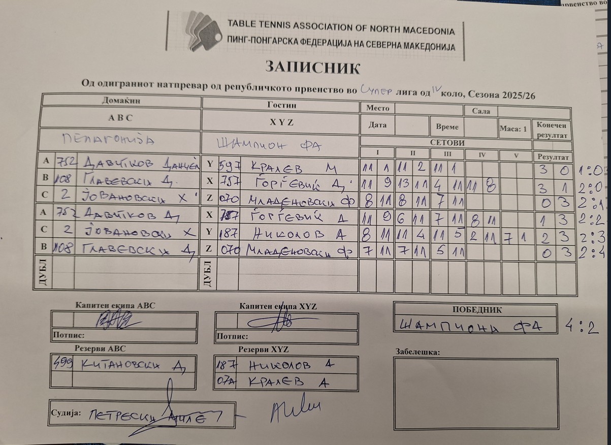 | Крива Паланка | - | Телеком Нец 2 | 4 | : | 3 | Телеком Нец 2 | - | Крива Паланка | : | ||||
