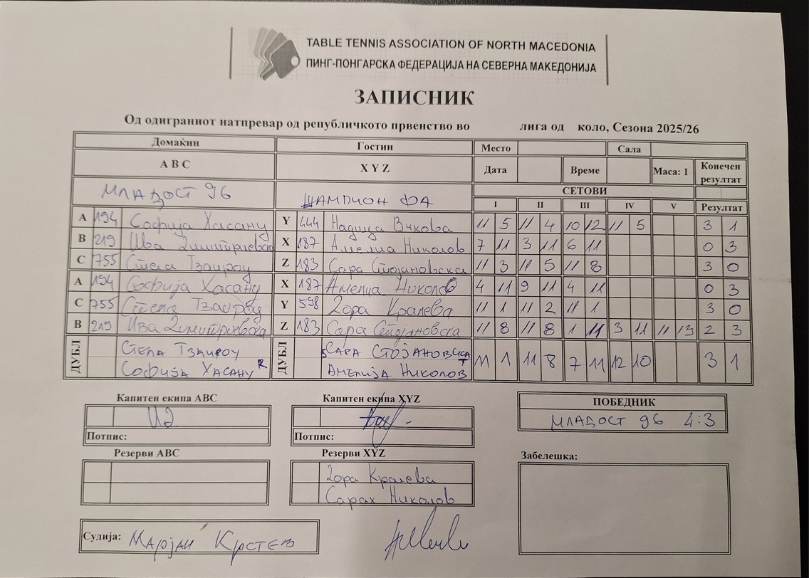 | 1 | Младост 96 | 4 | 4 | 0 | 16 | 6 | 10 | 8 | |||
