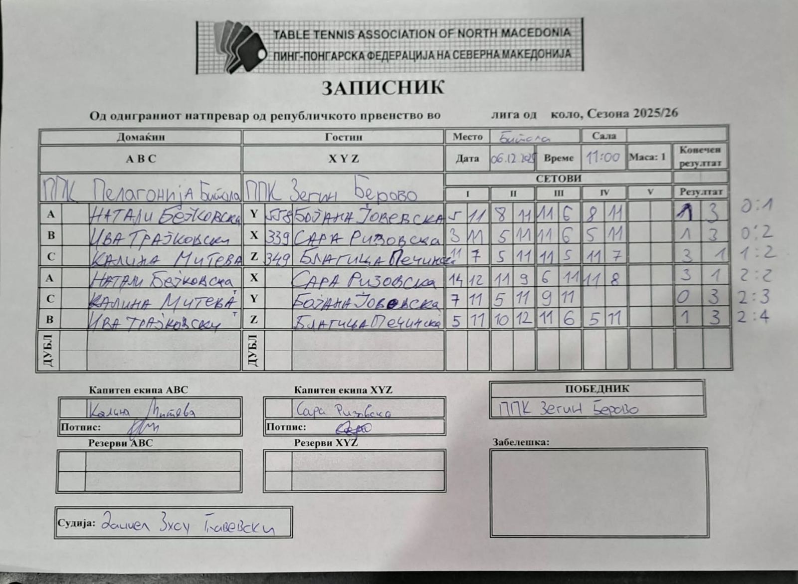 | 3 | Берово | 4 | 2 | 2 | 10 | 10 | 0 | 6 | |||