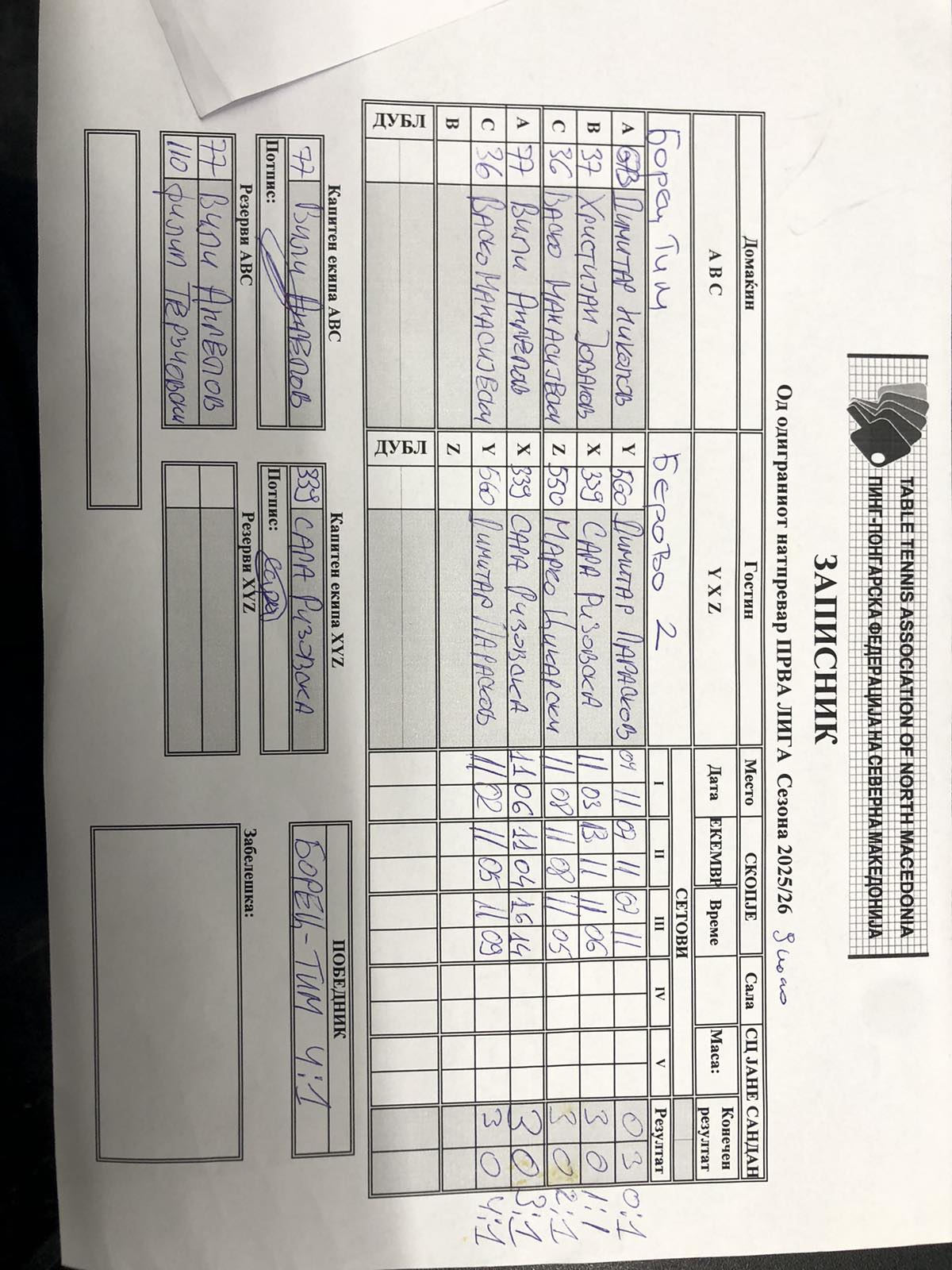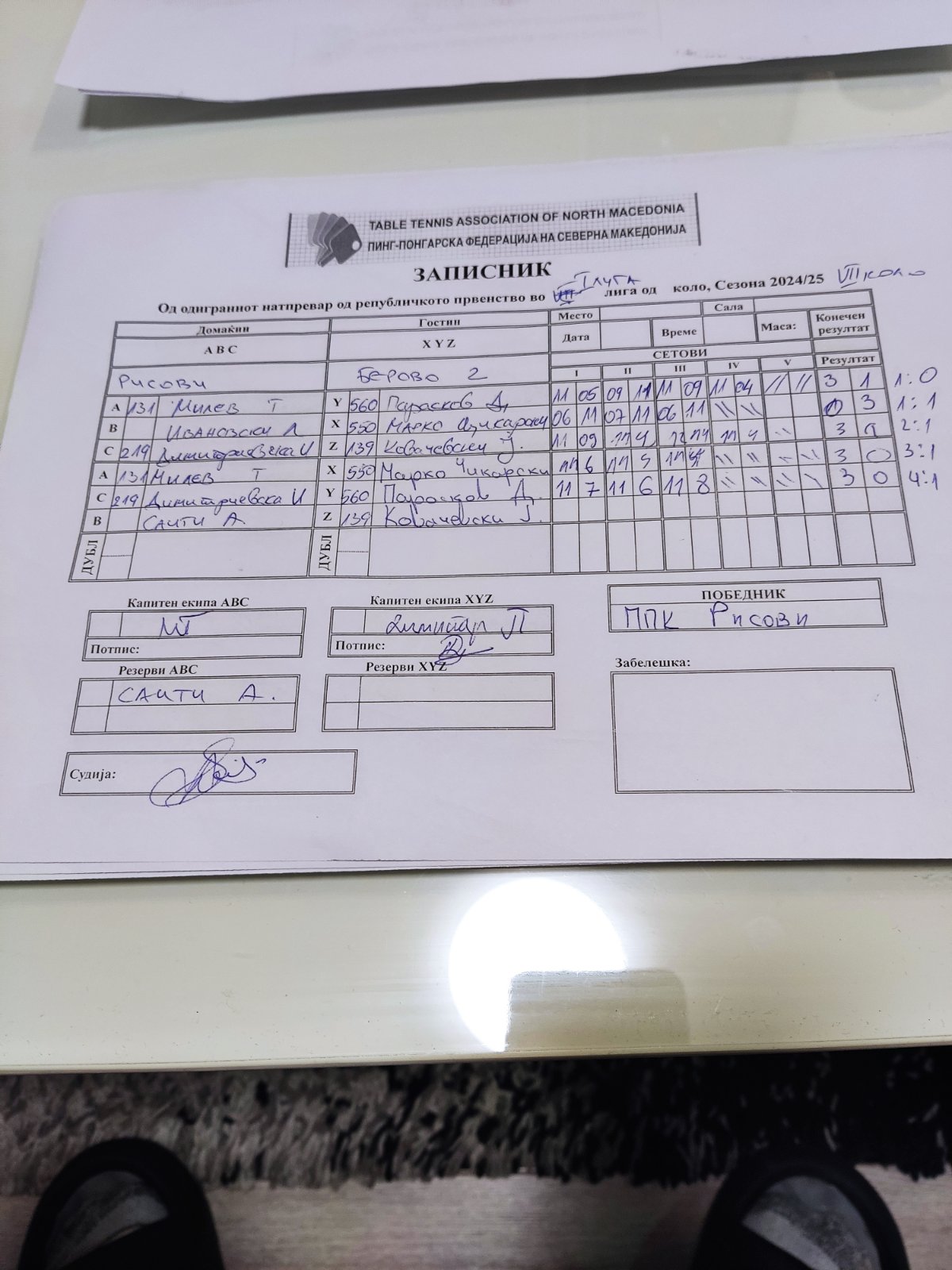 | Рисови | - | Борец Тим | 1 | : | 4 | Борец Тим | - | Рисови | : | ||||