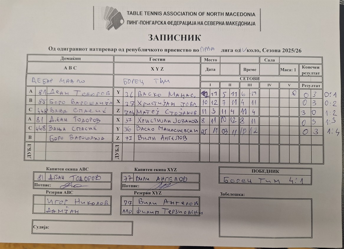 | Дебар Маало | - | Борец Тим | 1 | : | 4 | Борец Тим | - | Дебар Маало | : | ||||