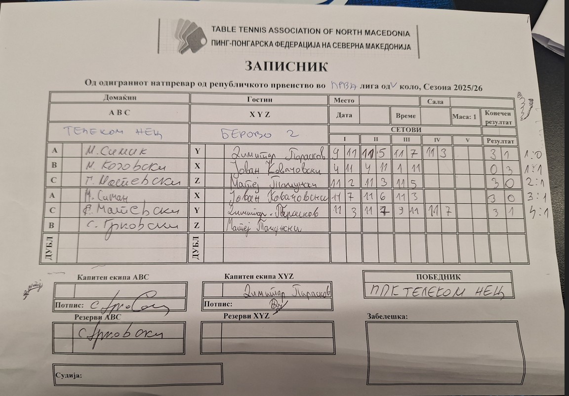 | Телеком Нец | - | Куманово | 3 | : | 4 | Куманово | - | Телеком Нец | : | ||||