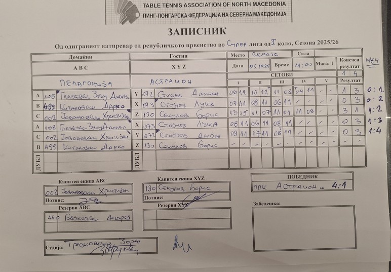 Астраион | - | 10 60 АС Ѓорче Петров | : | 10 60 АС Ѓорче Петров | - | Астраион | : | ||||||
