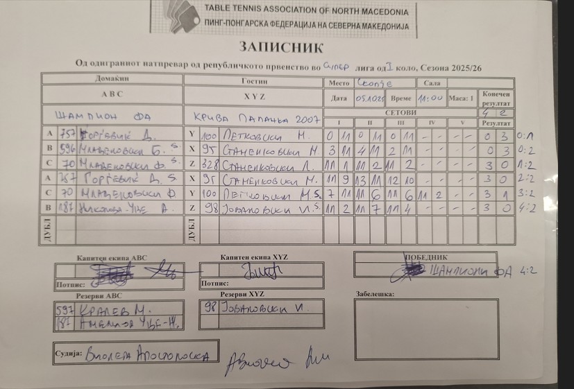 Шампион Фа | - | Крива Паланка | : | Крива Паланка | - | Шампион Фа | : | ||||||