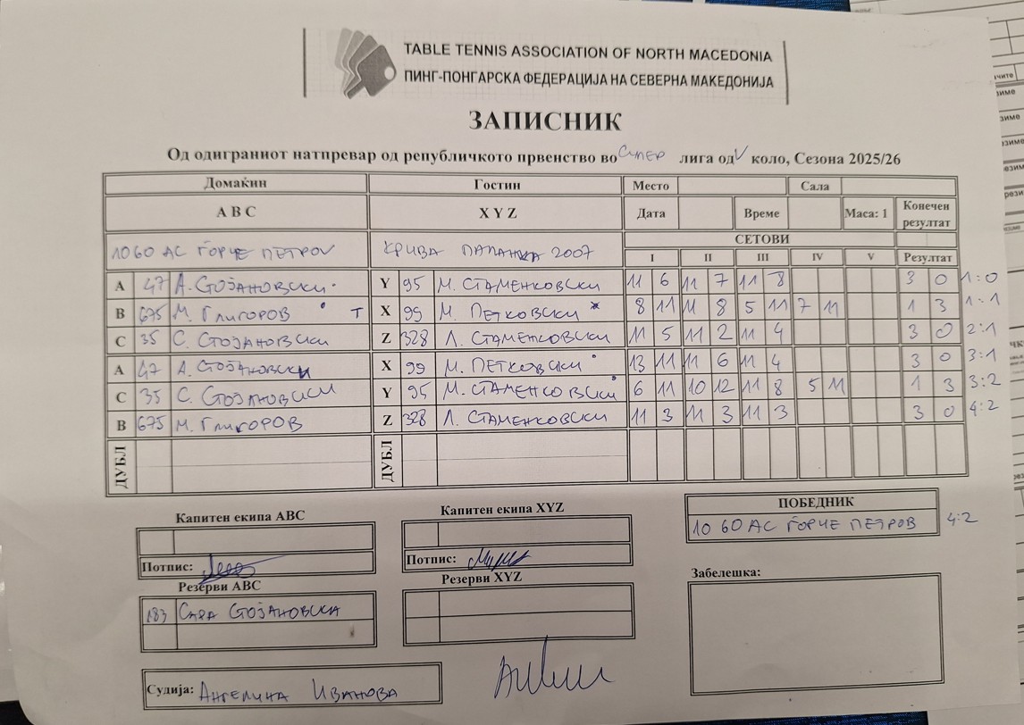 | 10 60 АС Ѓорче Петров | - | Крива Паланка | 1 | : | 4 | Крива Паланка | - | 10 60 АС Ѓорче Петров | : | ||||