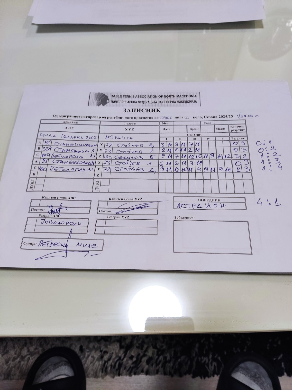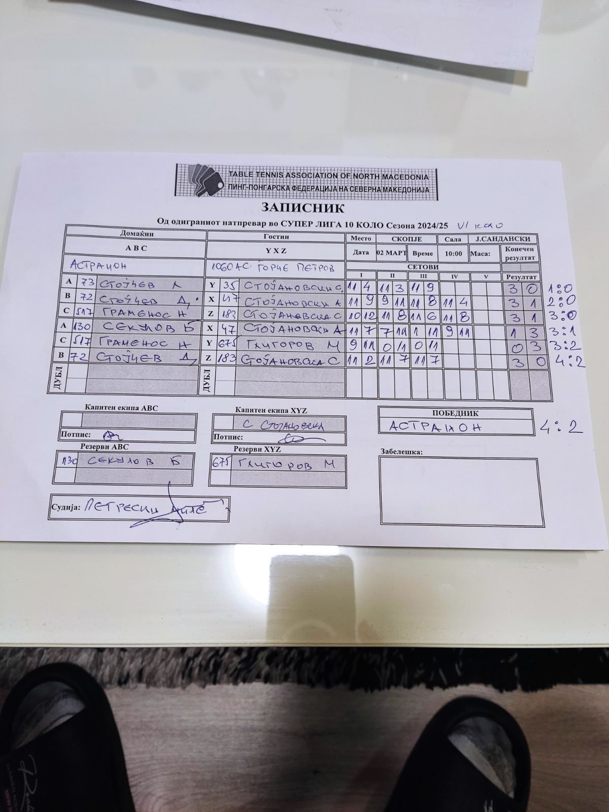 | Астраион | - | 10 60 АС Ѓорче Петров | 4 | : | 2 | 10 60 АС Ѓорче Петров | - | Астраион | : | ||||