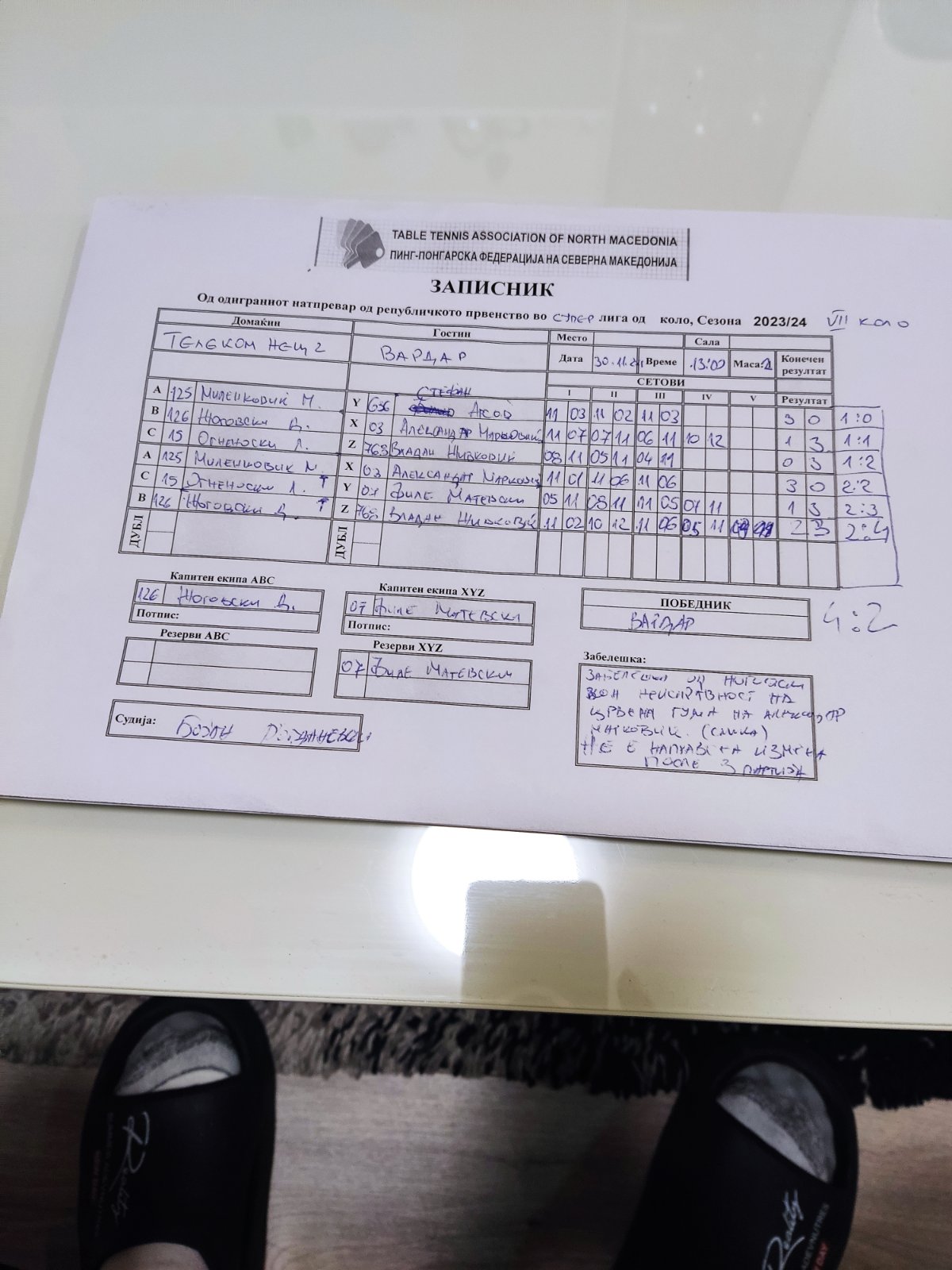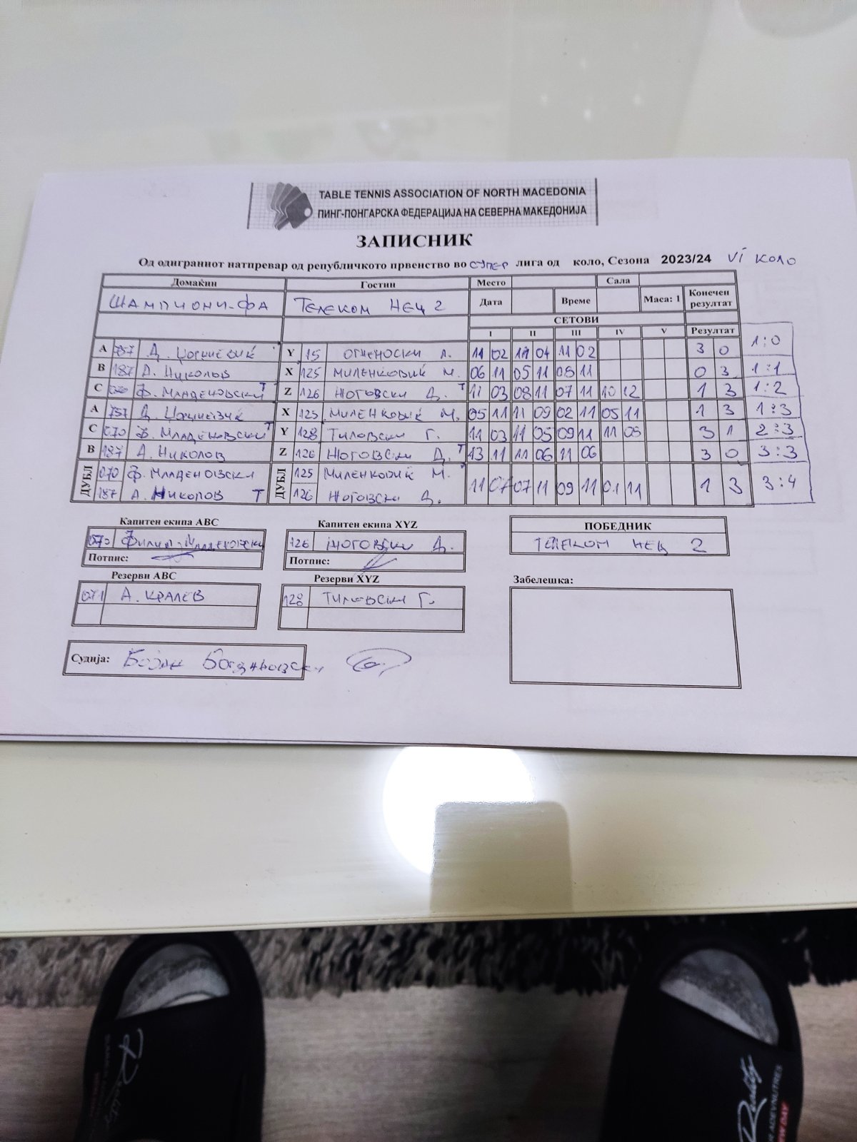 Телеком Нец 2 | - | Вардар | 2 | : | 4 | XVI КОЛО | Вардар | - | Телеком Нец 2 | : | ||
